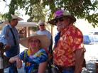 Mescalero put on a great match as usual that was fast and fun. The weather was a little warm but not unbearable. Everyone enjoyed dressing up in their Hawaiian outfits and looked pretty cute to boot. Some legs hadnÕt seen the sun in ages so folks needed sun glasses but I am sure they got a good tan those two days. The pot luck was a success with cold cuts, fruits and some mighty tasty side dishes. Burly Bear carved up a watermelon, with the 5 Dog logo on the handle and filled it with tasty fruit. What a treat!