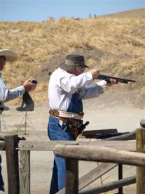 Hot times were had at the ole range this month by all who were brave enough to face it. Dang, what a great match. My eyes needed darker sunglasses to face the bare legs showing, which hadn't seen the sun in who knows how long. But the extra breeze floating round sure felt wonderful to those exposed parts for sure. There was colorful attire and a few grass skirts to add a little extra flavor to the mix too. Fordyce Beals and Leia Tombstone did a great job in making this match fun and fast. Hopefully next months match will be a little cooler and as much fun as always. So bring extra ammo and that ole sun block and have a great time at the ole range.